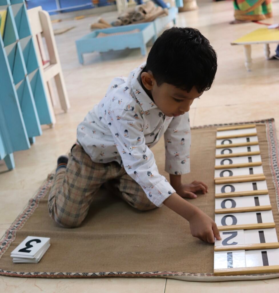 Scientifically designed Montessori materials engage senses, refine movement, build concepts concretely, and help children progress from hands-on exploration to abstract understanding with clarity and confidence.
